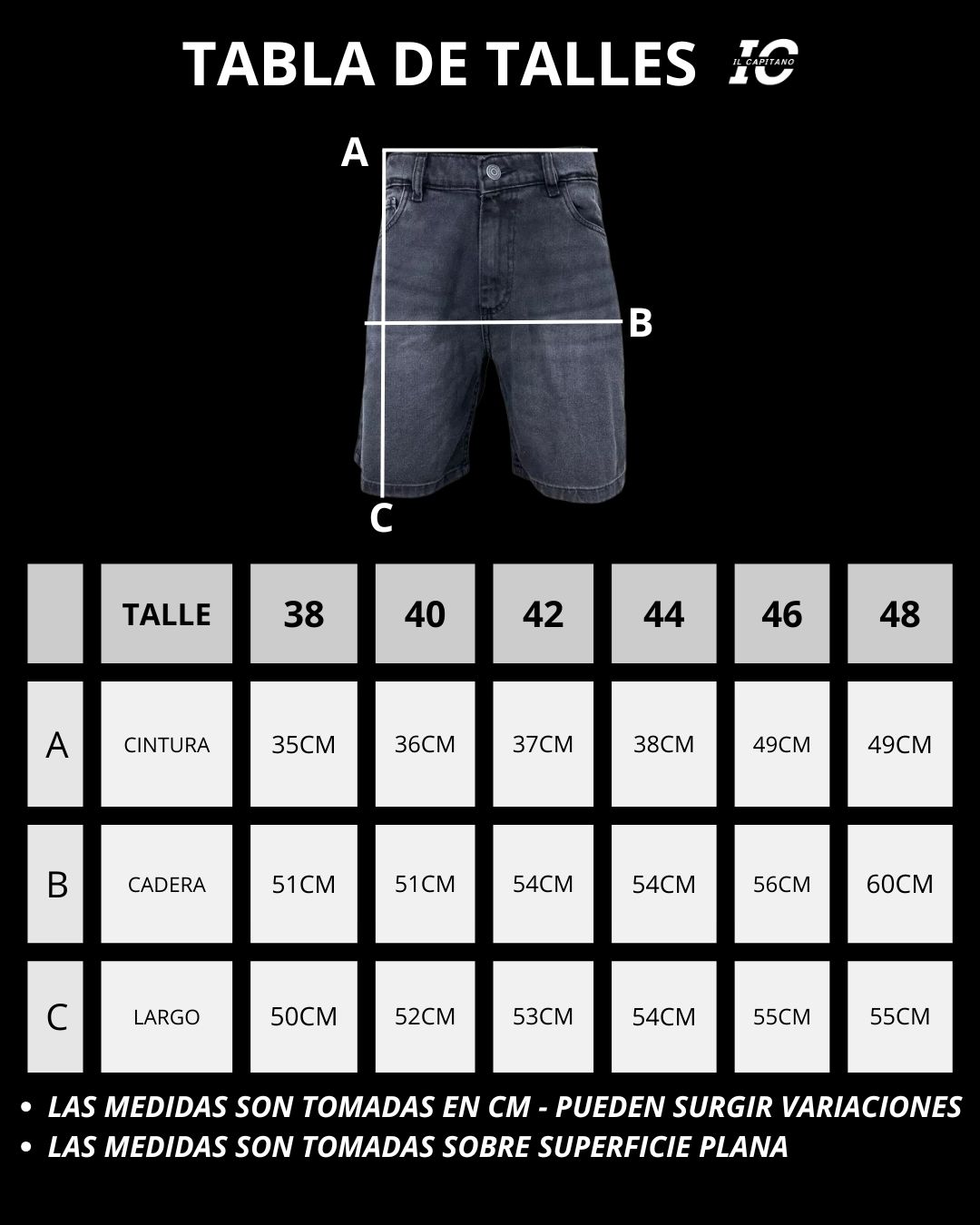 Te sugerimos que compares las medidas de nuestra tabla de talles con una bermuda que uses para estar seguro al momento de elegir el talle