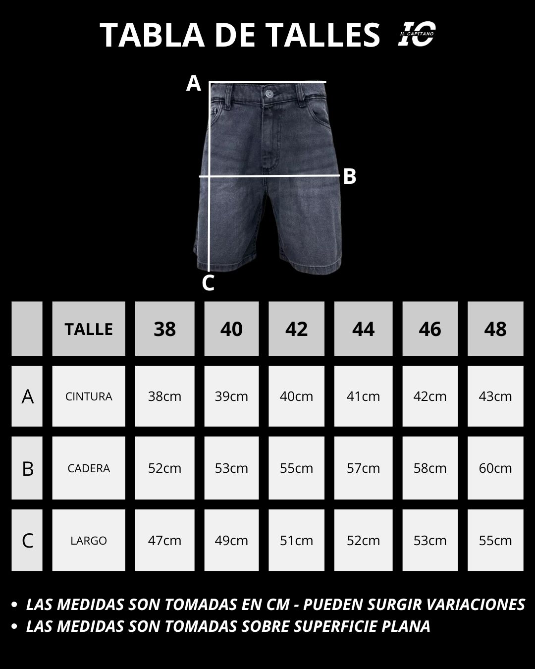 Te sugerimos que compares las medidas de nuestra tabla de talles con una bermuda que uses para estar seguro al momento de elegir el talle