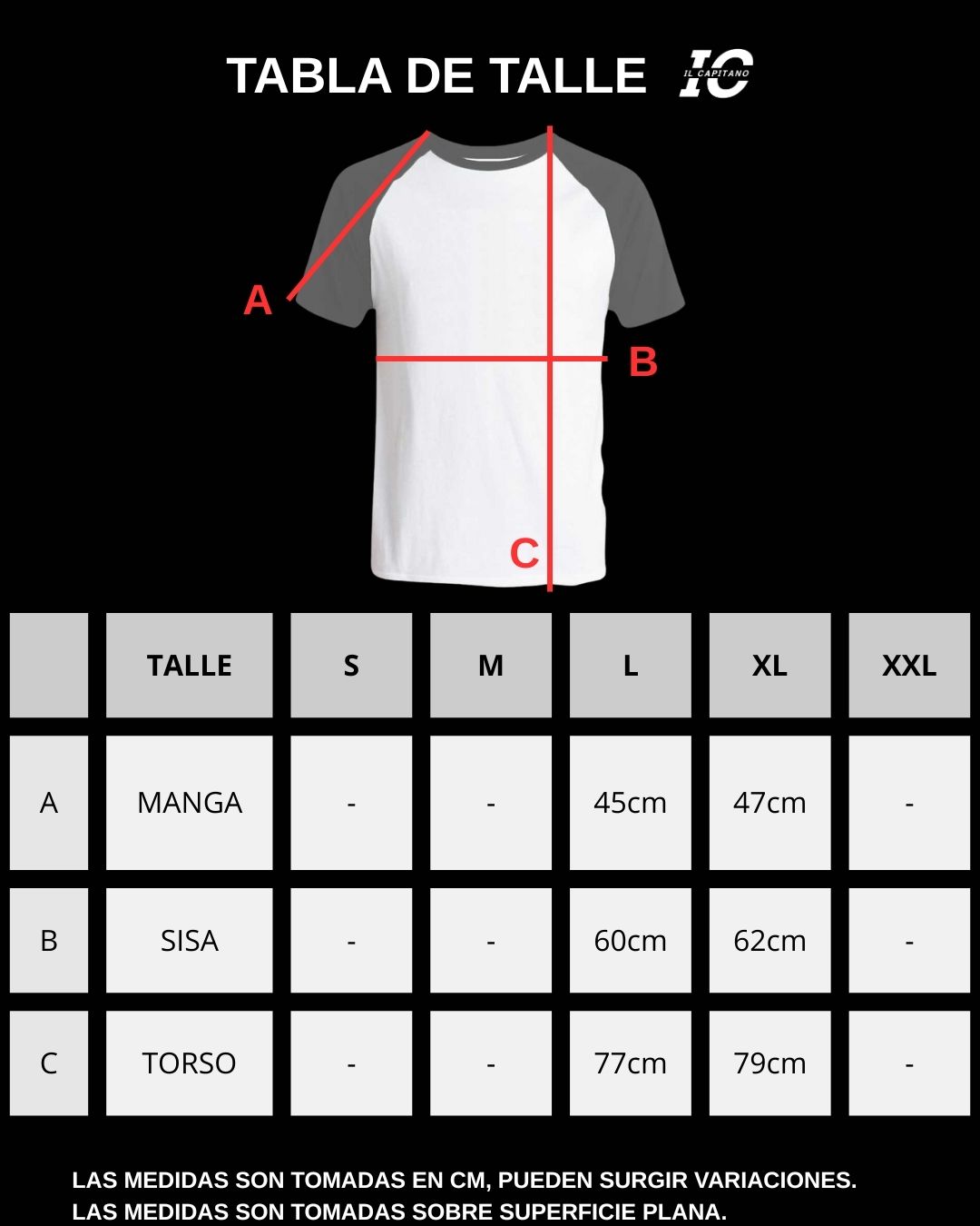 Consultá la tabla de talles para elegir tu medida ideal.