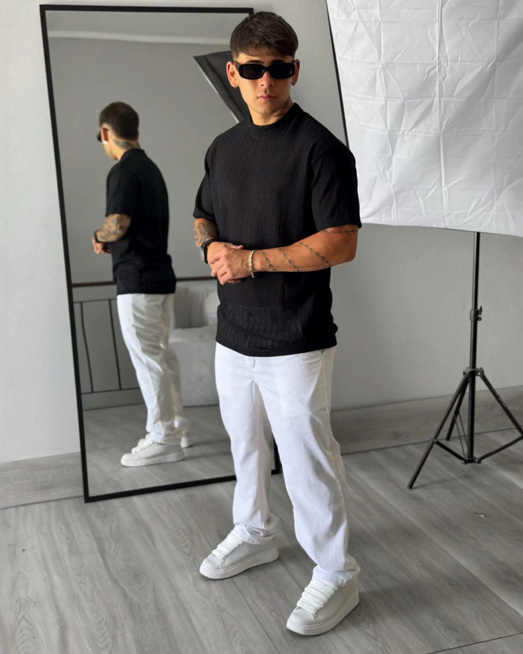 La remera tejida Eder presenta un corte clásico que se adapta a cualquier ocasión. No es ajustada, pero tampoco oversize, logrando el equilibrio perfecto de comodidad y estilo.