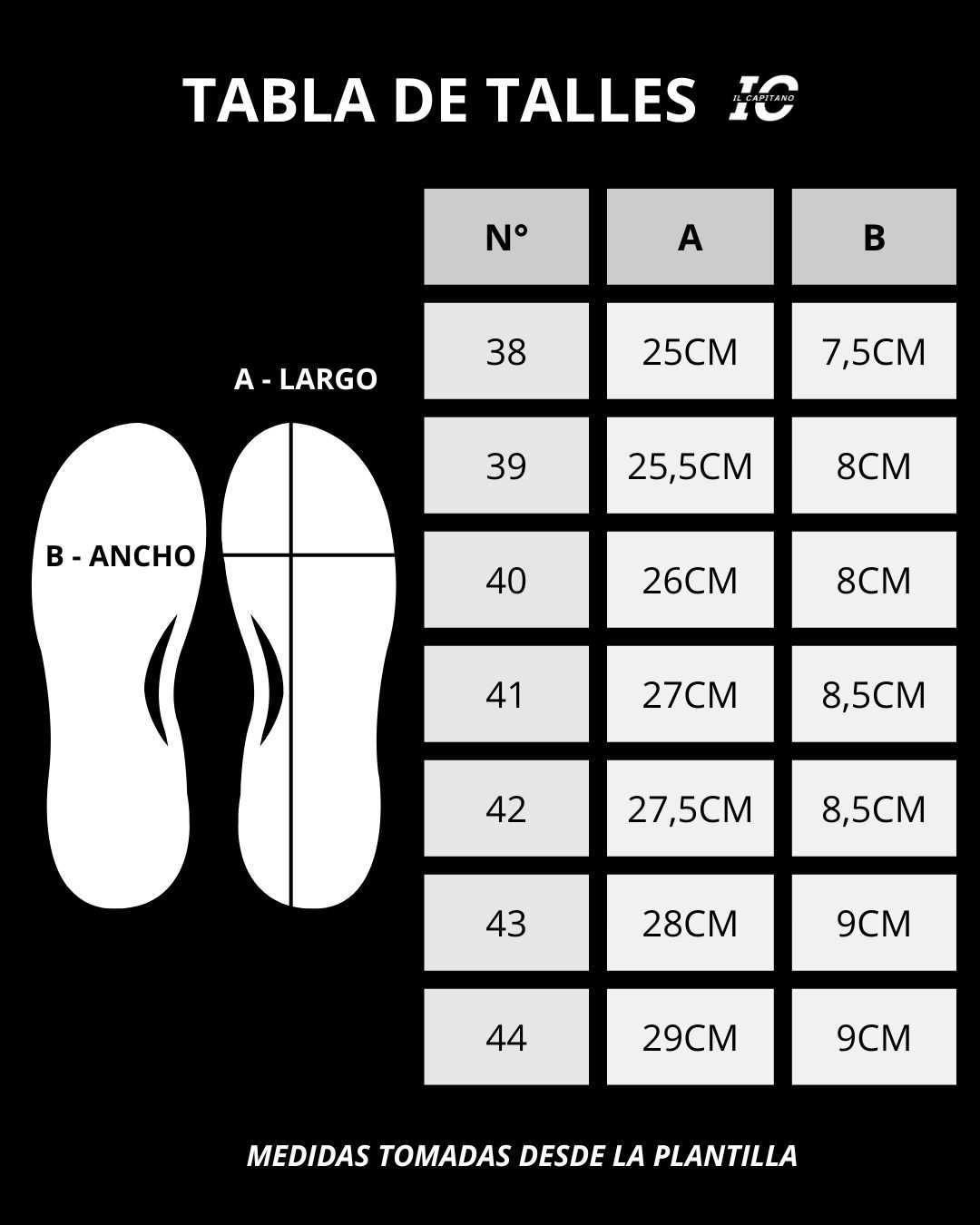 Recomendamos consultar la tabla de talles antes de elegir tu número. Para cambios o devoluciones, revisá nuestras políticas.